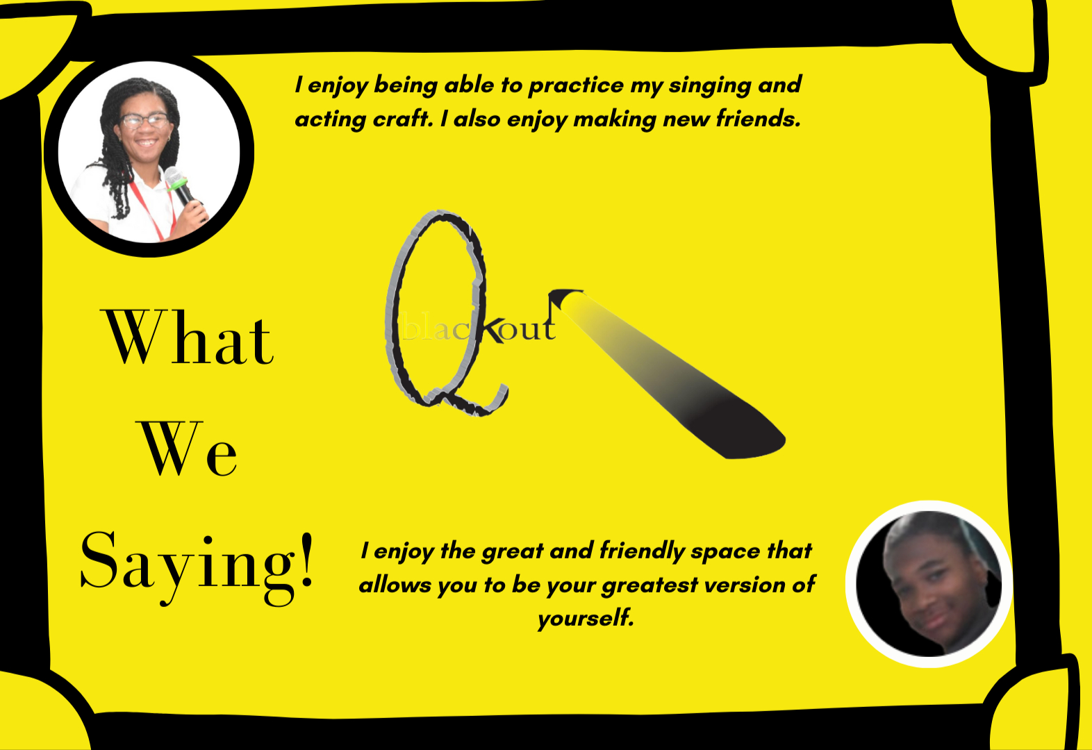 At Que Blackout, we believe every young creative has a story that deserves to be seen, heard, and felt. Whether they are mastering the lighting board, finding their voice in a vocal workshop, or stepping into the spotlight for the first time, our students are doing more than just putting on a show they are building the confidence to lead. But don't just take our word for it. Listen to the voices of the young artists who are transforming their creative ideas into reality every day.